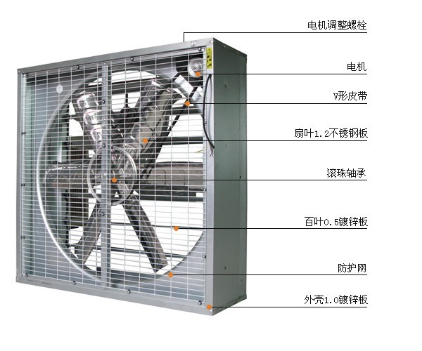 鐵皮負(fù)壓風(fēng)機,顧名思義,其外殼主要采用鐵皮(鍍鋅板)材質(zhì)制成,利用負(fù)壓原理進行工作,主要用于工業(yè)廠房、倉庫、養(yǎng)殖場、溫室大棚等場所的通風(fēng)換氣、降溫除濕。